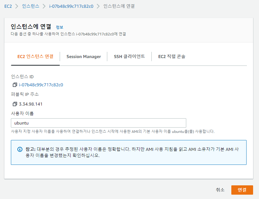 새 탭으로 내 인스턴스 터미널에 접속될텐데