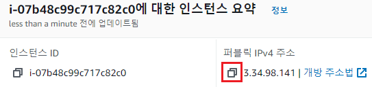 퍼블릭 IPv4 주소 복사 후 새탭으로 열기