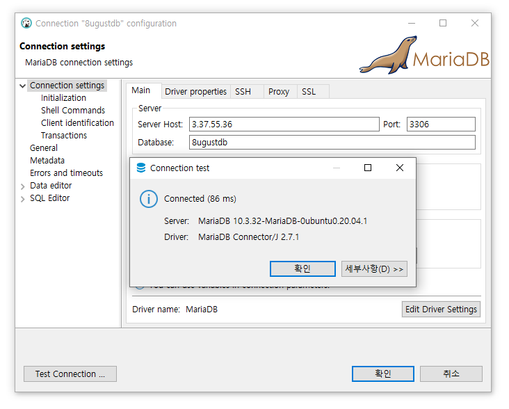 이상으로 MariaDB 외부 접속 연결을 마치겠다.