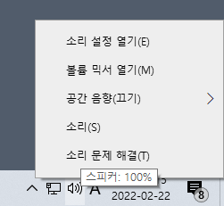PC 우측 하단 스피커모양 우클릭