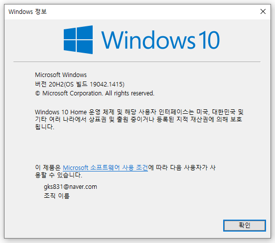 WSL을 설치하기 위해선 버전 20H1(1903) 이상, 빌드 18362 이상의 환경을 요구한다. window + R 키를 눌러 winver를 입력해서 확인할 수 있다.특별히 별 다른 일이 없다면 누구나 준비가 되어있는 환경이지만, 혹시라도 버전이나 빌드가 낮을 경우 윈도우 업데이트를 우선 진행해주자. 업데이트에는 최소 5분 부터 시작해 길면 10분 이상의 시간이 소요될 수 있다.