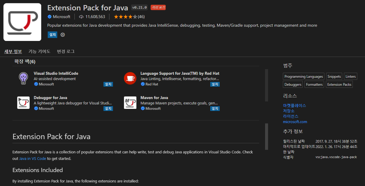 1. VSCode Java 확장 설치