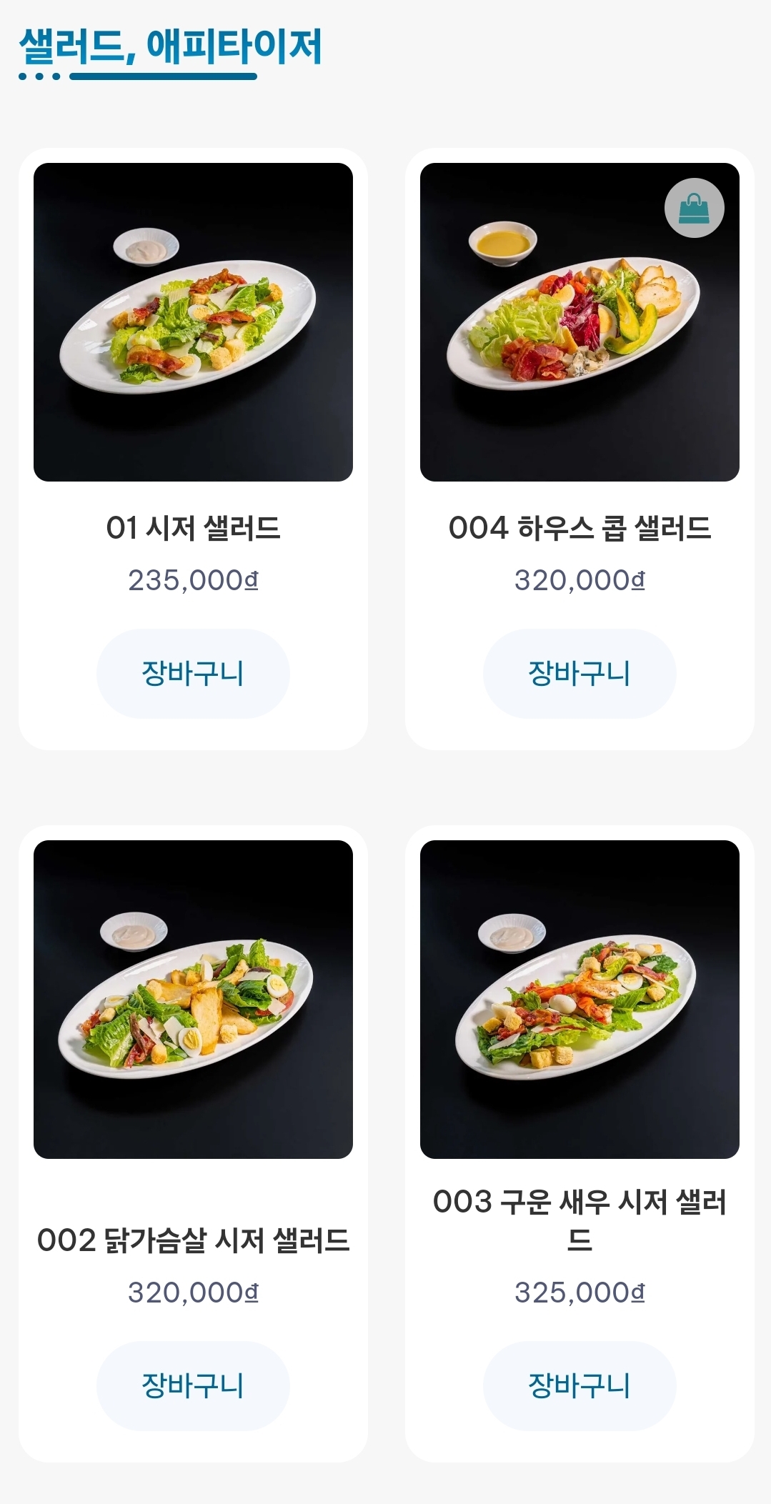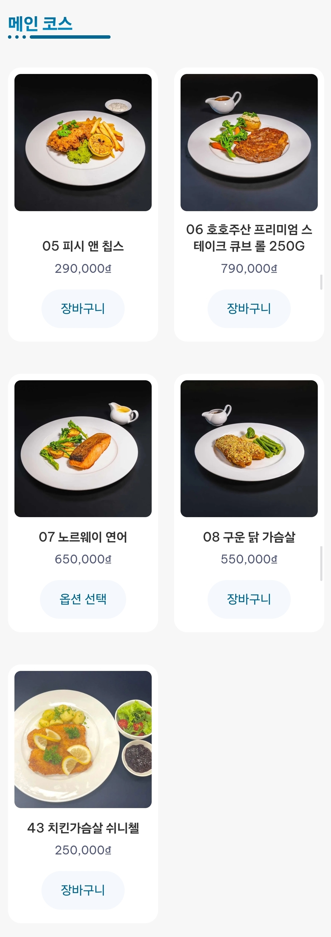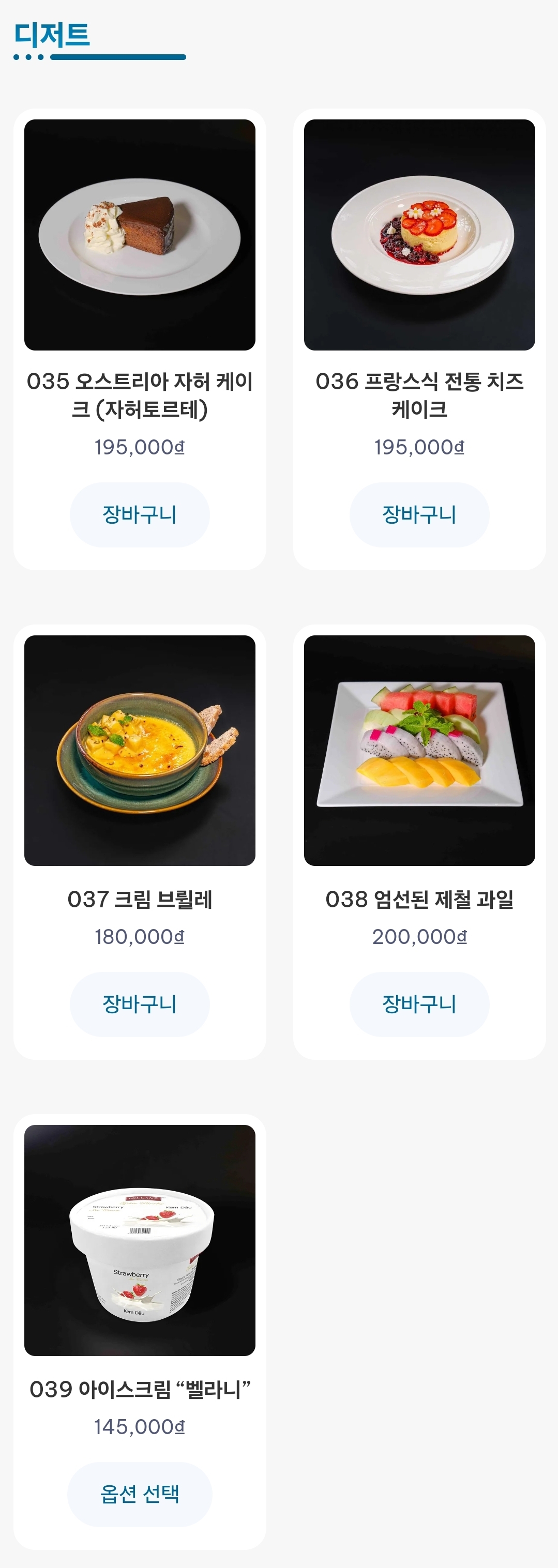 메뉴와 가격은 다음과 같다.