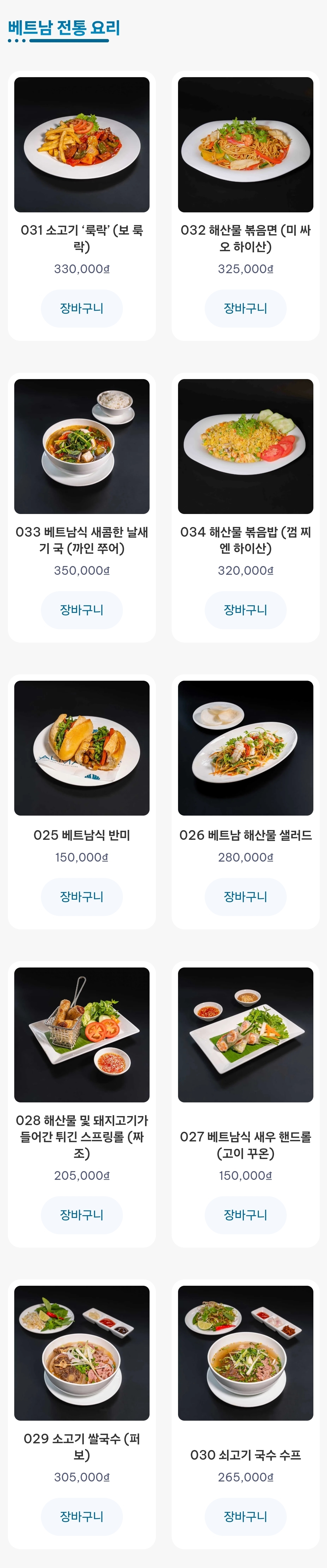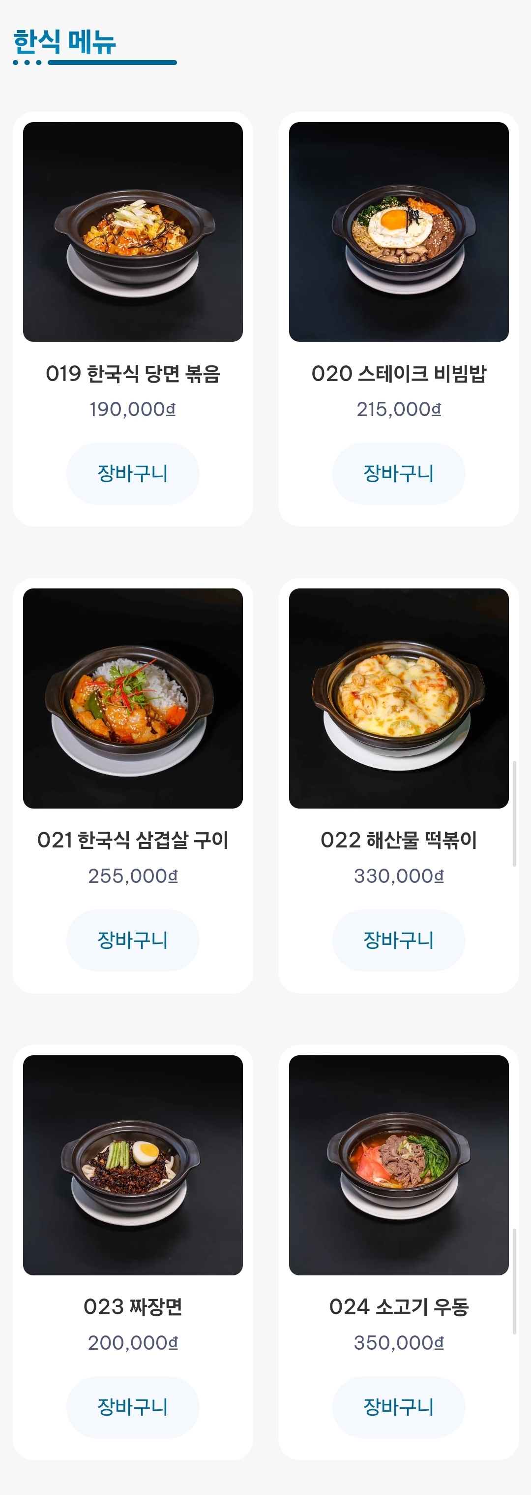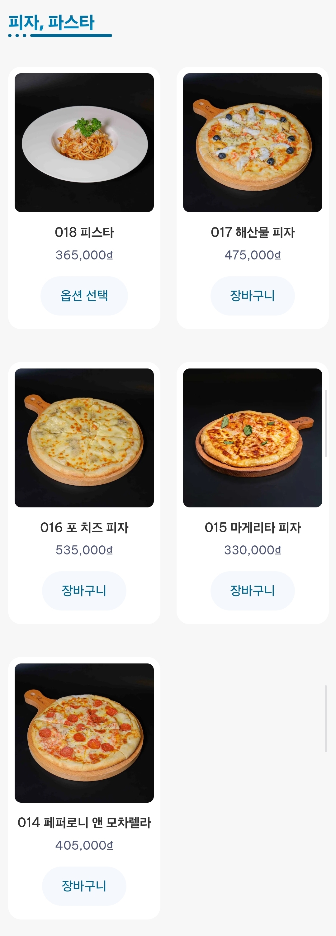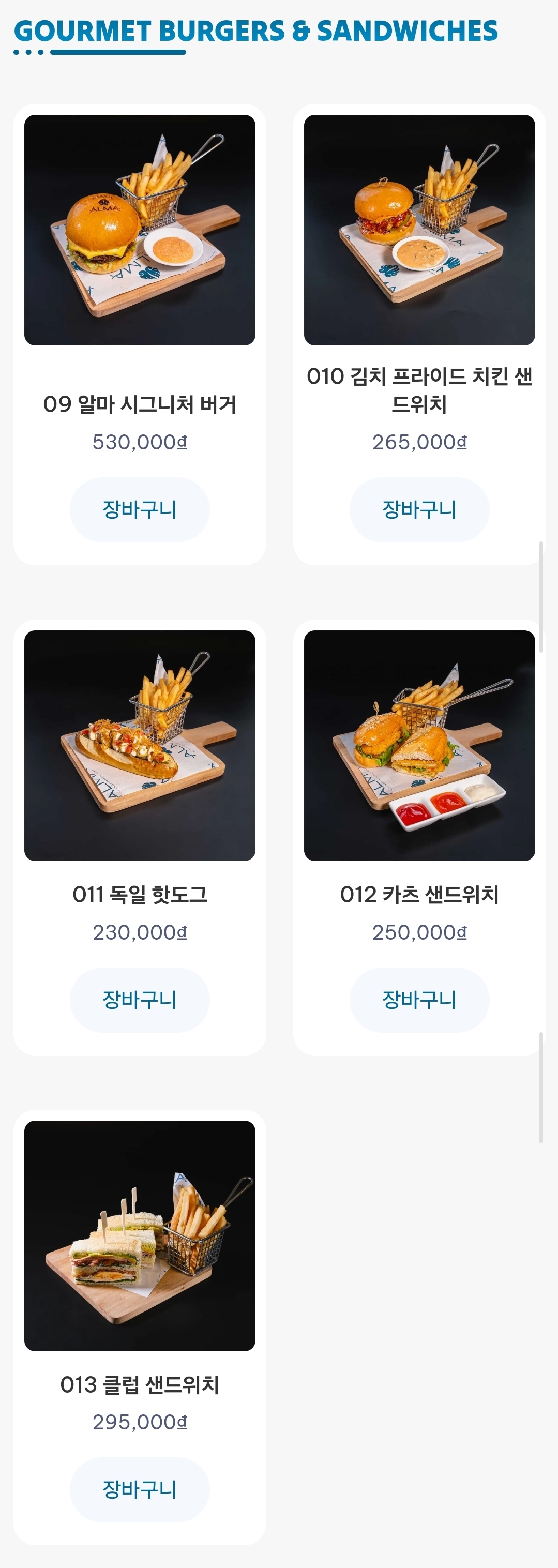 메뉴와 가격은 다음과 같다.
